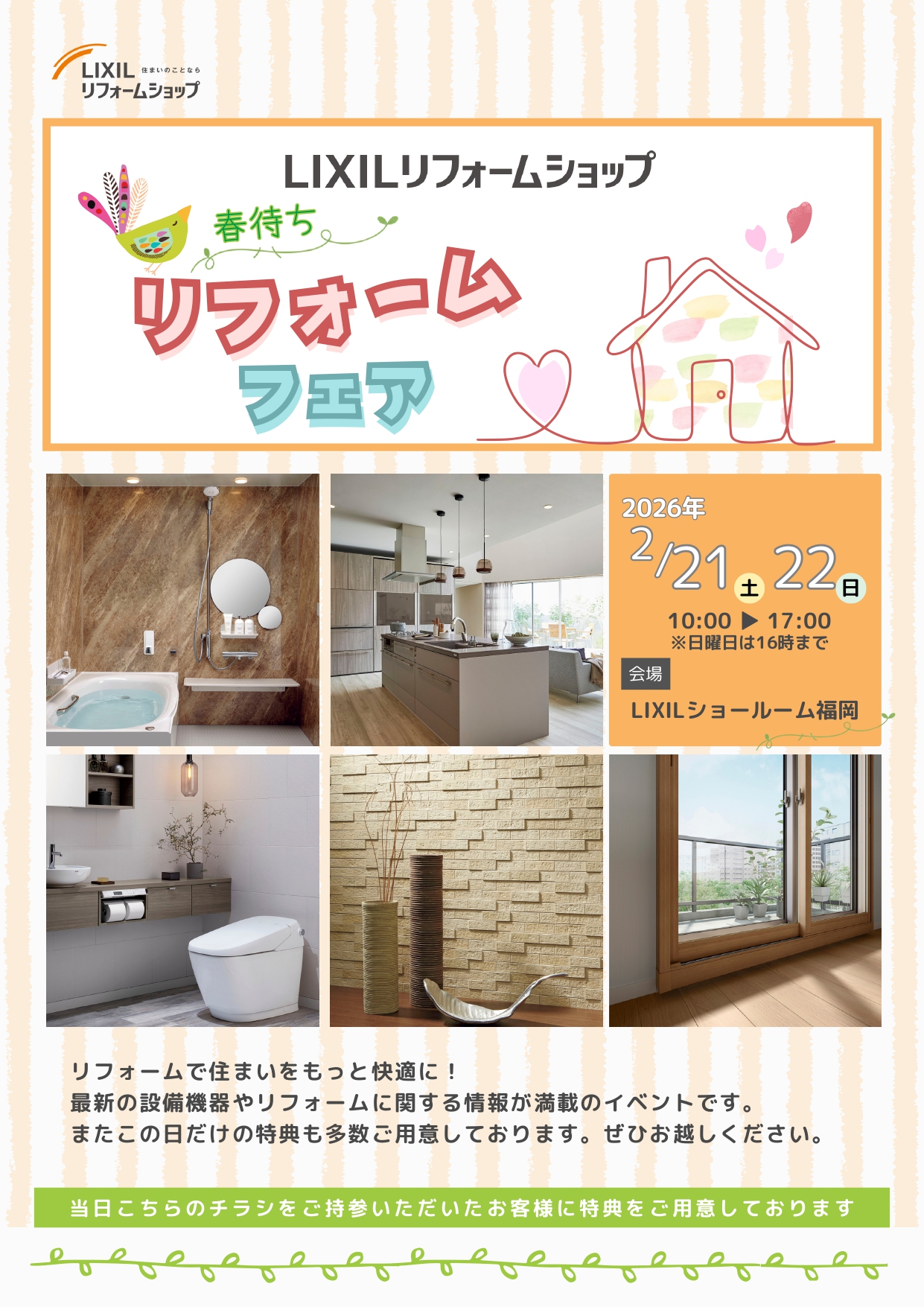 LIXILショールーム福岡にて「春待ちリフォームフェア」を開催いたします。